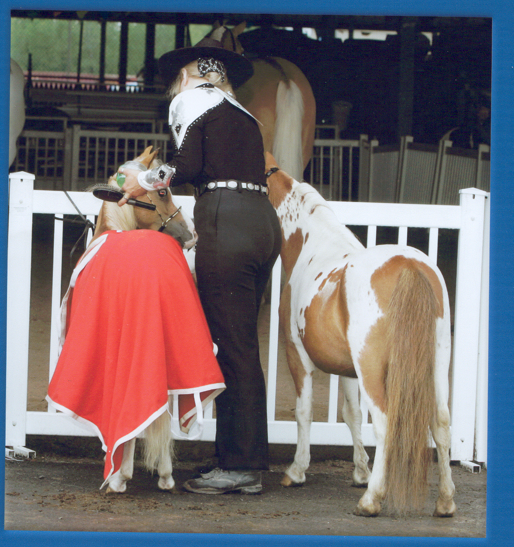 | Trotting Brook Cherokee Maiden (Danika) Red & White HOMOZYGOUS Tobiano Pinto AMHR, PtHA, WCMHR born June 15, 1994 32" $4000 |