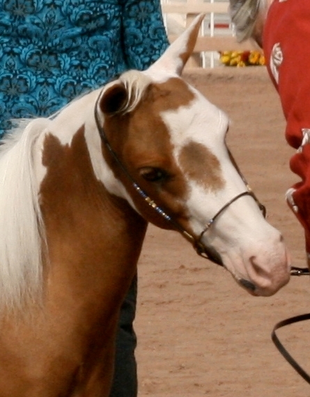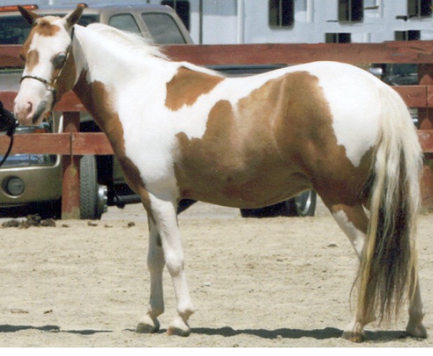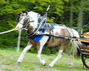 | "Varucca" - a gorgeous tovero with one blue and one brown eye. Beautiful Tobiano mare with an outstanding pedigree! AMHA, AMHR, PtHA, BEHA and WCMHR. she is 34" and is broke to drive, jump, and does trail and with such great confirmation, no wonder she makes a great halter mare. Dam of 2011 PtHA WORLD CHAMPION 2011 ESHMA 3x Top Six Overall 2009 AMHR All-Star CHAMPION MARE Broodmare and 4x Top Ten Horse Co-Owned and currently NOT for sale. |